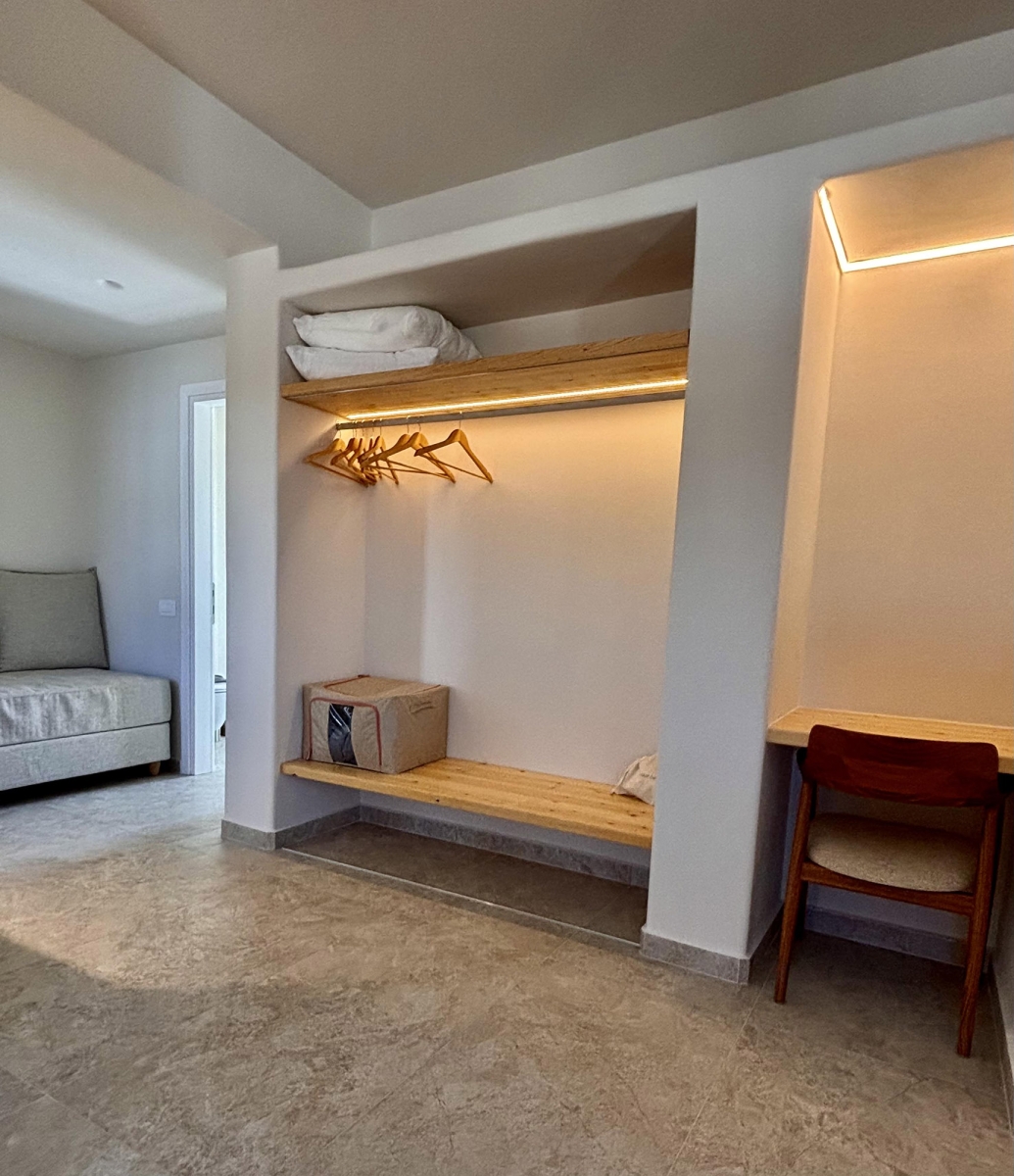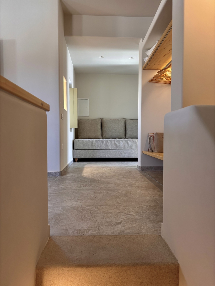 Κρεβάτια: 1 μονό κρεβάτι, 1 μεγάλο διπλό κρεβάτι & 1 γωνιακός καναπές